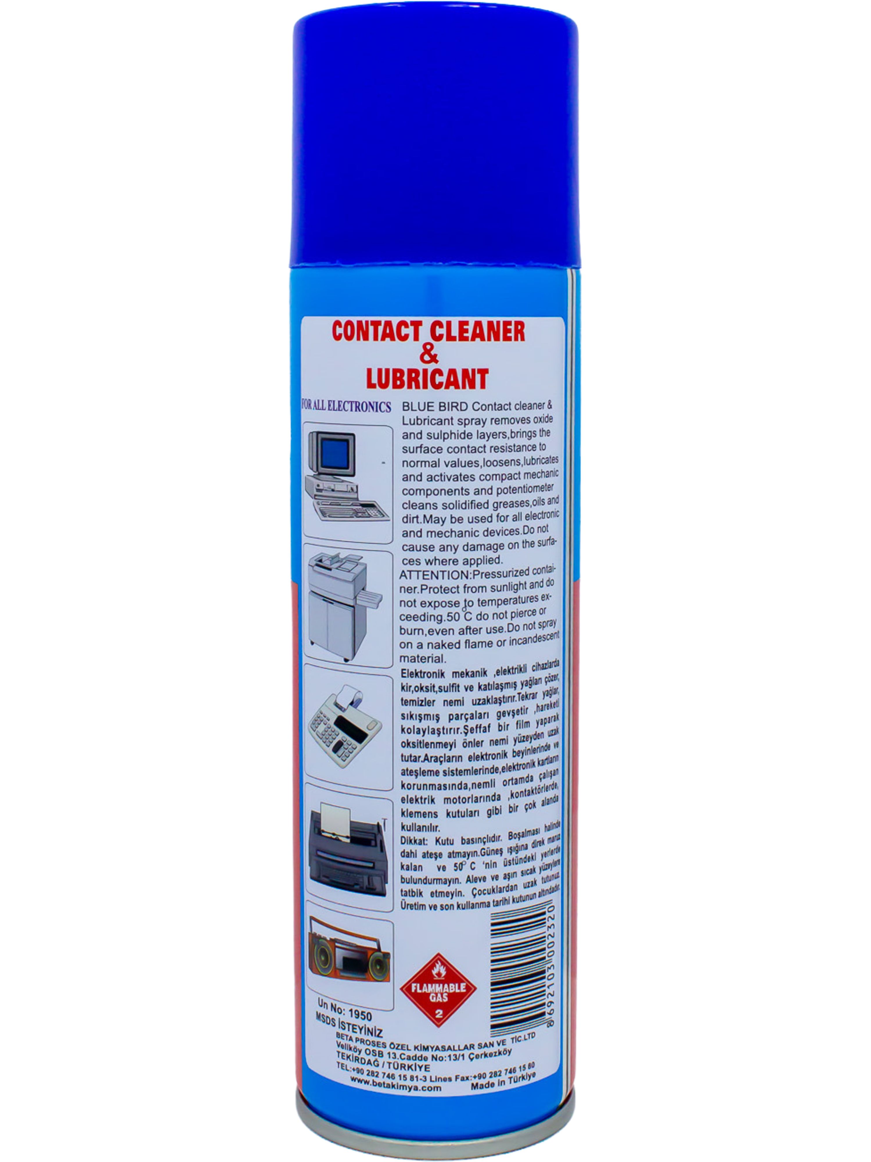 It's a cleaner used on electronic, mechanical, and electrical devices, as well as materials made of plastic and glass, for cleaning and degreasing purposes. It easily removes dust and oil from the surface, evaporating rapidly without leaving any residue. It is also used in many fields, such as cleaning laser readers, vehicle electronic control units and ignition systems, electronic cards, buttons and switches, computer mainboards, etc. It does not damage the applying surface. It does not contain harmful materials for human health and the environment.