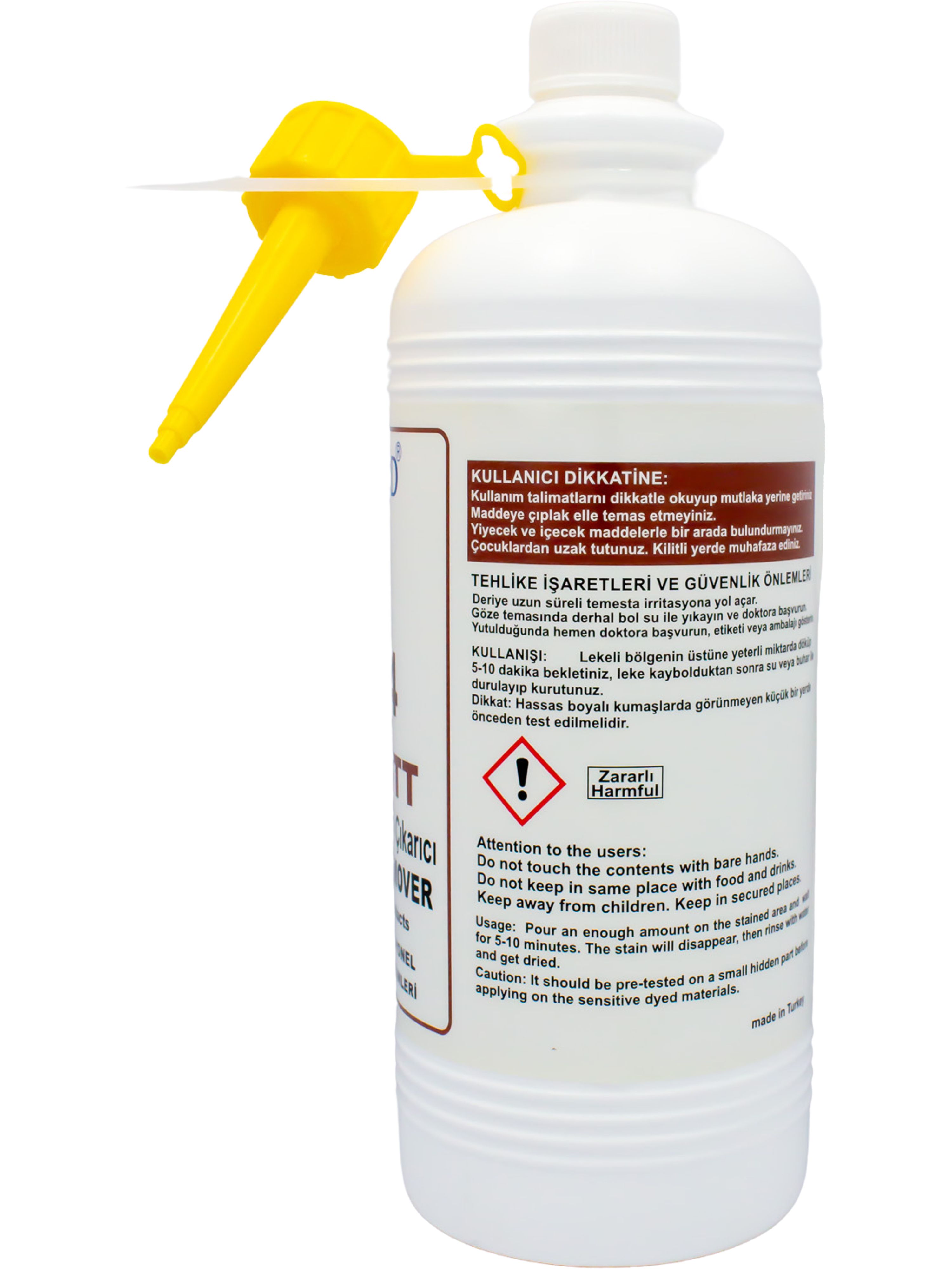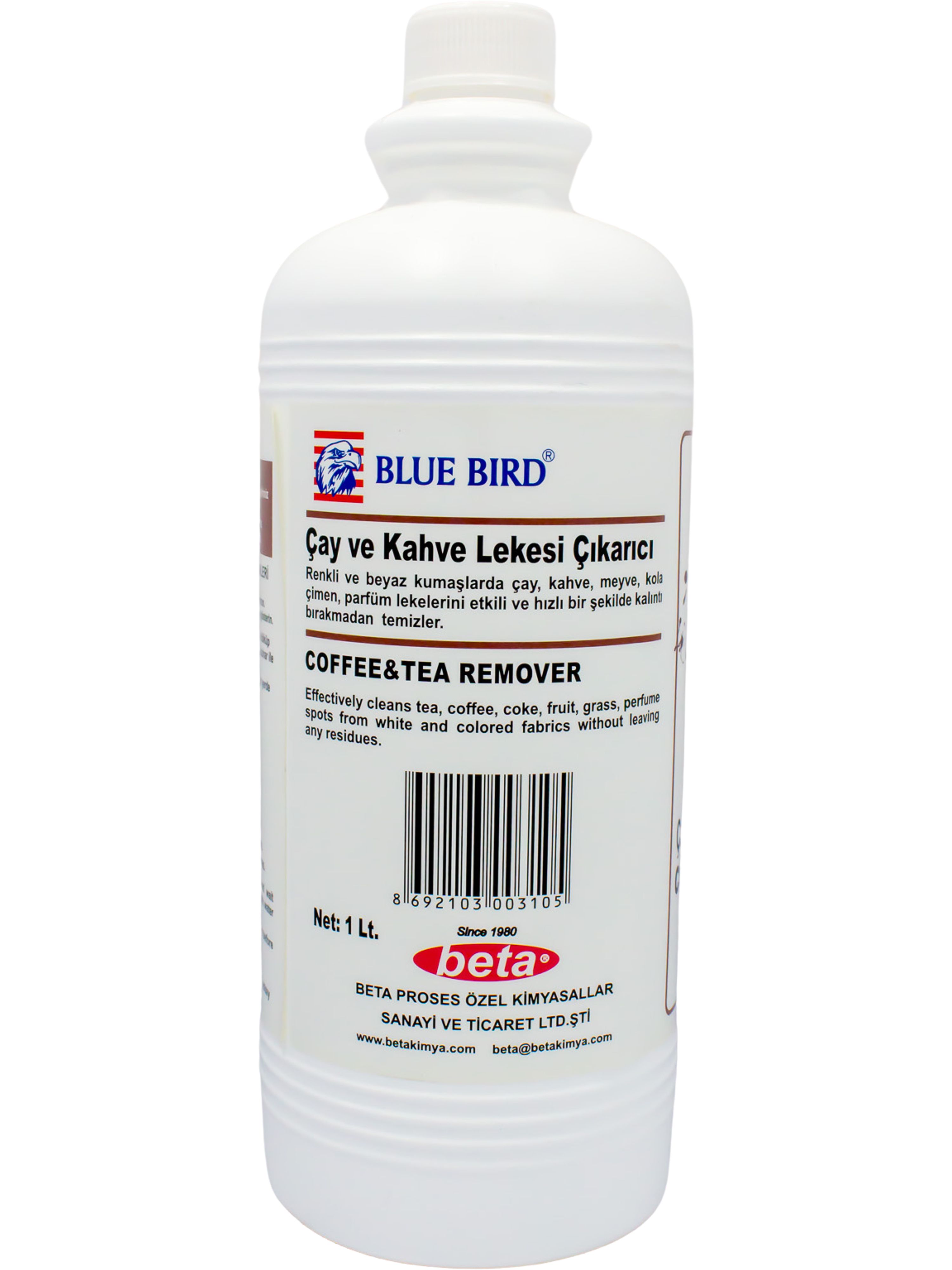 Effectively cleans tea, coffee, coke, fruit, grass, perfume spots from white and colored fabrics without leaving any residues. Specially formulated for industrial usage in 1L packages. Drop it on the spot and wait a while, then rinse with water or steam. It can be used on all fabric types.