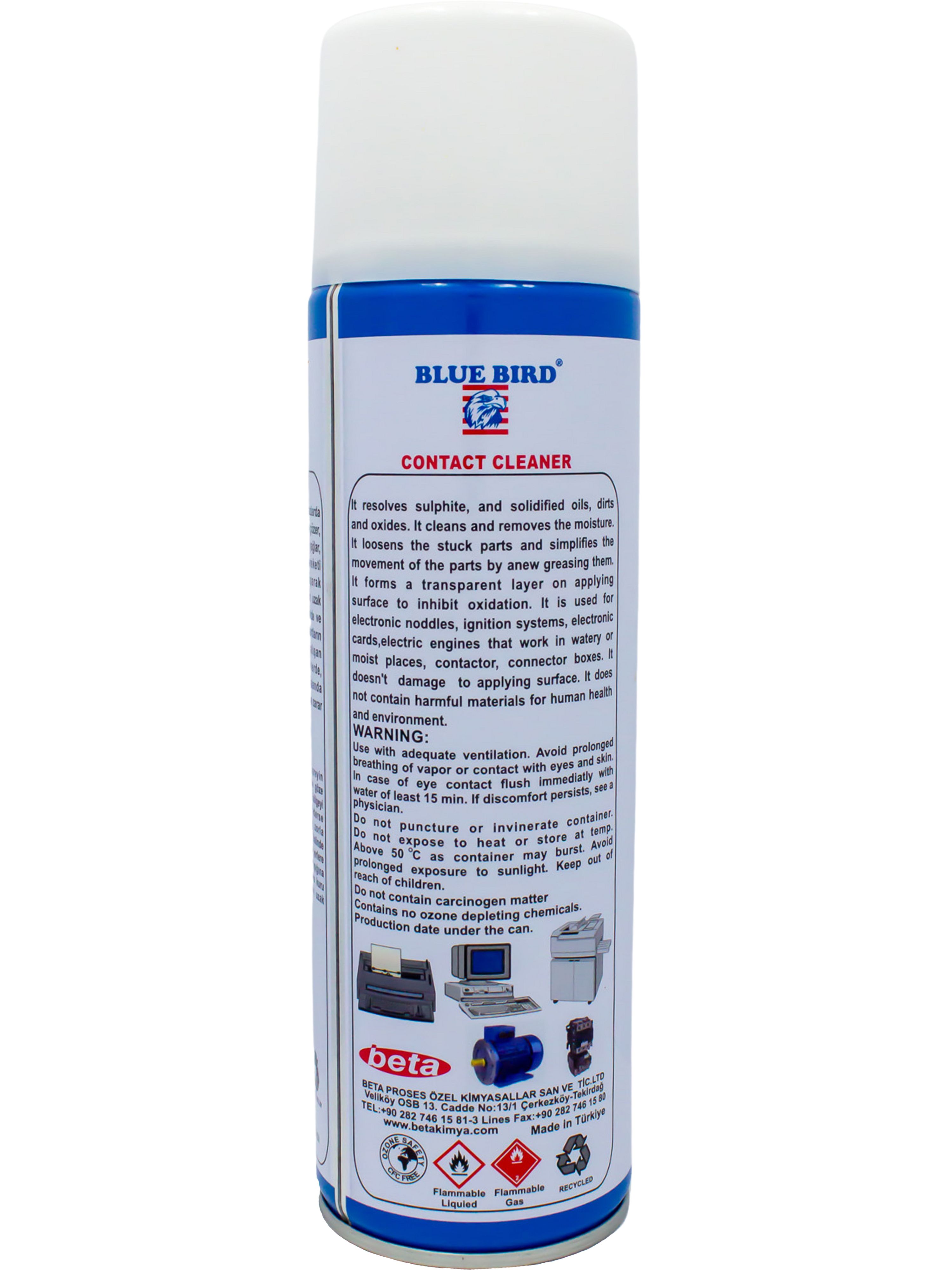 It dissolves sulphites, solidified oils, dirt, and oxides. It cleans and removes moisture. It loosens stuck parts and simplifies their movement by re-lubricating them. It forms a transparent layer on the applying surface to inhibit oxidation. It is used for electronic modules, ignition systems, electronic cards, electric engines operating in wet or moist environments, contactors, and connector boxes. It does not damage the applying surface. It does not contain harmful materials for human health and the environment.