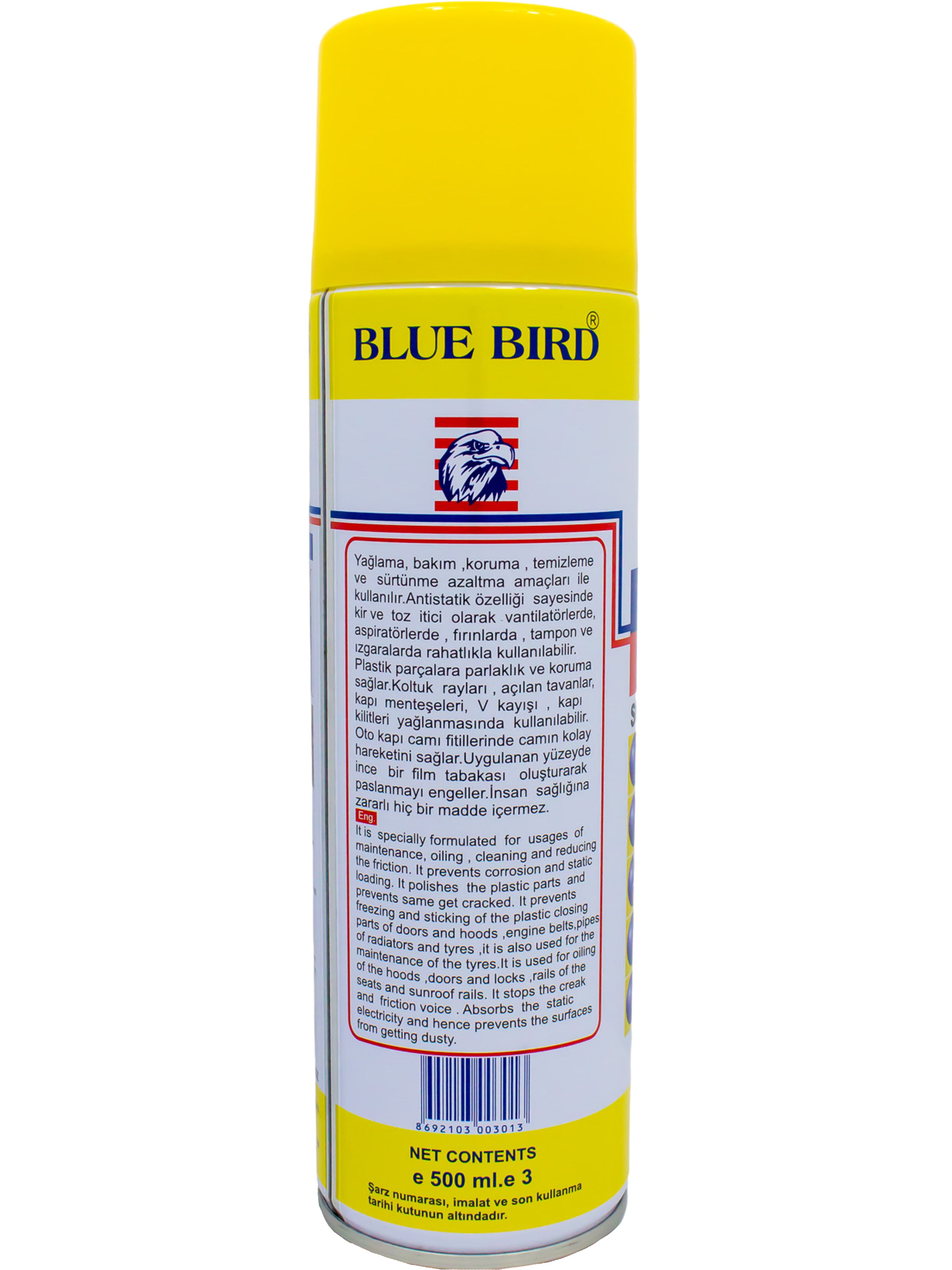 Bakım yapma, yağlama, temizleme ve sürtünmeyi azaltma amacıyla kullanılmak üzere özel formüle edilmiştir. Statik yüklenmeyi ve pas oluşumunu engeller. Plastik parçalara parlaklık verir ve koruma sağlayarak çatlamaları önler. Kapı ve kaput lastiklerinin, motor kayışlarının, radyatör borularının ve araç lastiklerinin bakımını yapar, yapışmayı ve donmayı engeller. V kayışı, kapı ve kilitler, koltuk rayları, açılır tavan menteşelerinin yağlanmasında kullanılır. Gıcırtı ve sürtünme seslerini yok eder. Statik elektriğin birikimini engelleyerek toz tutmayı önler. Otomobil torpidosunu temizler ve parlaklık verir. Montaj sırasında lastik borularının bağlanmasını kolaylaştırır.