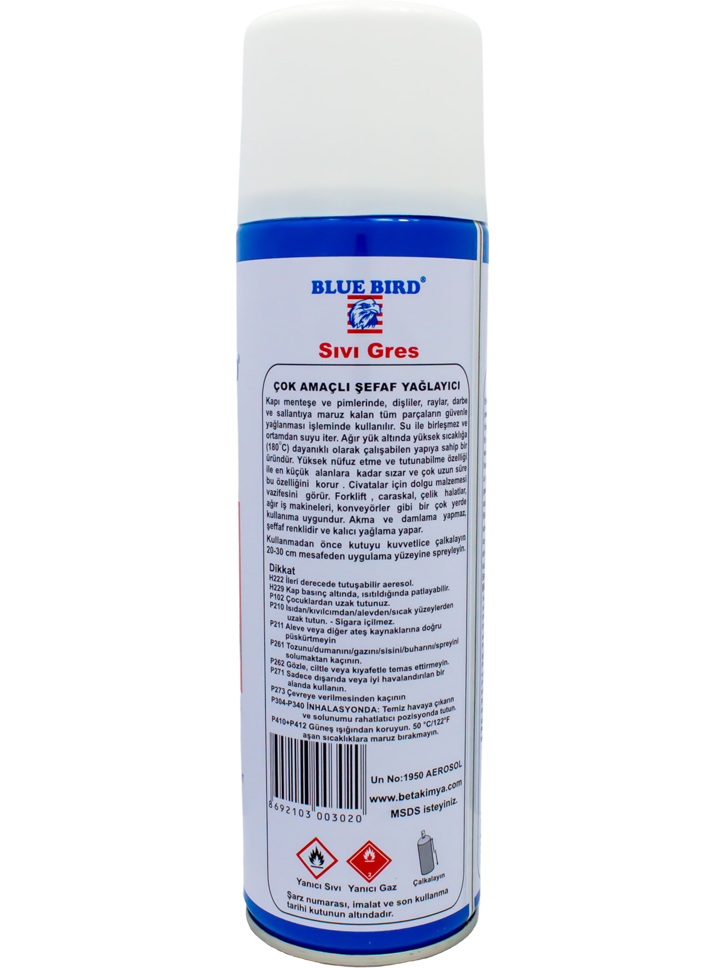 Kapı menteşe ve pimlerinde, dişlilerde, raylarda, darbe ve sallantıya maruz kalan tüm parçaların yağlanmasında kullanılır. Su ile birleşmez ve ortamdan suyu iter. Ağır yük altında yüksek sıcaklığa (180°C) dayanıklı olarak çalışabilen bir üründür. Yüksek nüfuz etme ve tutunabilme özelliği ile en küçük alanlara kadar sızar ve bu özelliğini çok uzun süre korur. Civatalar için dolgu malzemesi olarak da kullanılır. Forkliftler, vinçler, çelik halatlar, ağır iş makineleri, konveyörler gibi birçok yerde kullanıma uygundur. Akma ve damlama yapmaz, şeffaf renklidir ve kalıcı yağlama sağlar. Kanserojen maddeler içermez.